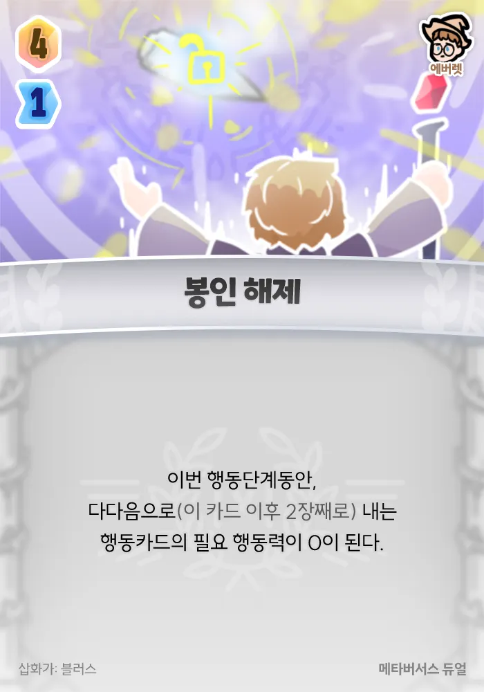 이번 행동단계동안, 다다음으로(이 카드 이후 2장째로) 내는 행동카드의 필요 행동력이 0이 된다.
