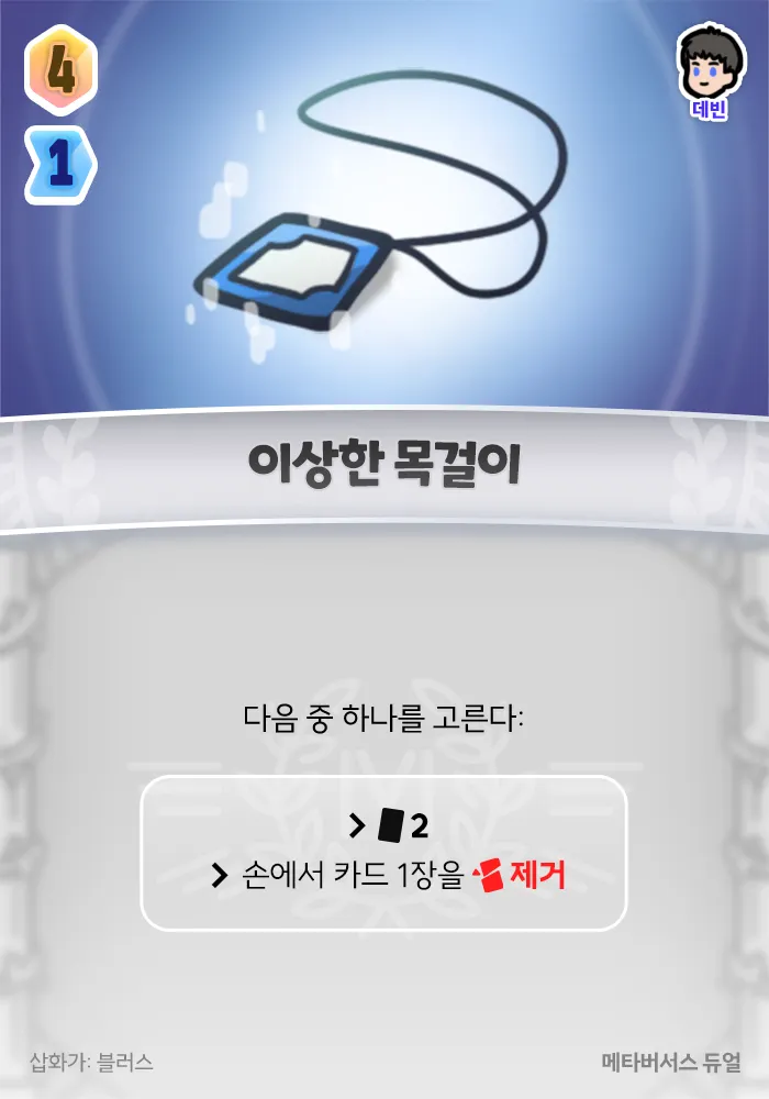 다음 중 하나를 고른다: ■ +2 카드 ■ 손에서 카드 1장을
