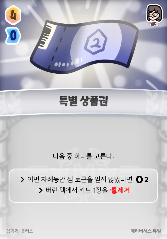 다음 중 하나를 고른다: ■ 이번 차례동안 젬 토큰을 얻지 않았다면, +2