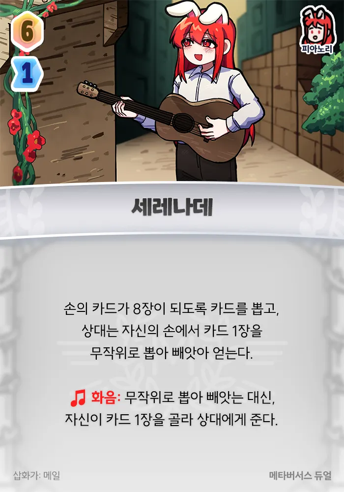 무작위로 뽑아 빼앗는 대신, 자신이 카드 1장을 골라 상대에게 준다.