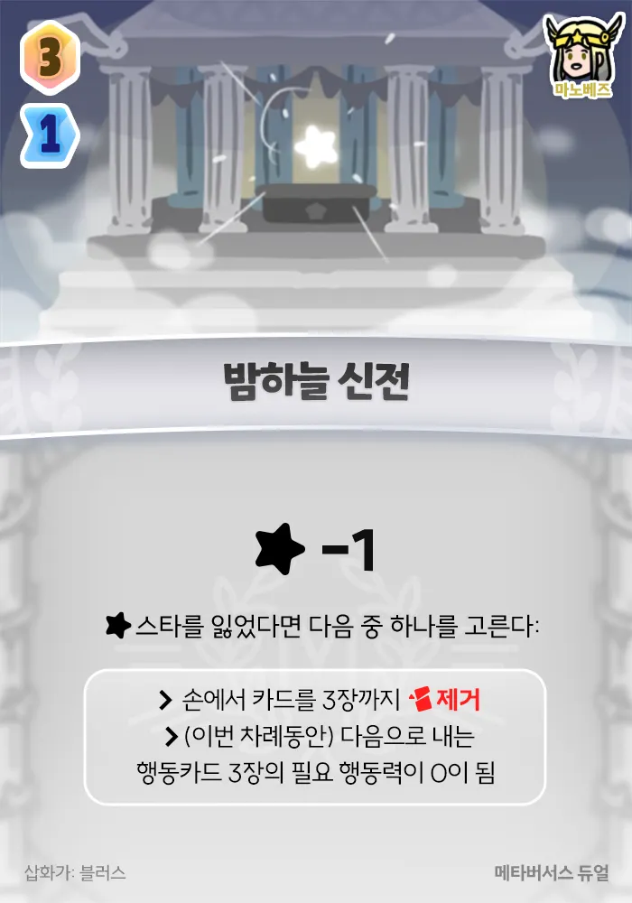 , 스타를 잃었다면 다음 중 하나를 고른다: ■ 손에서 카드를 3장까지