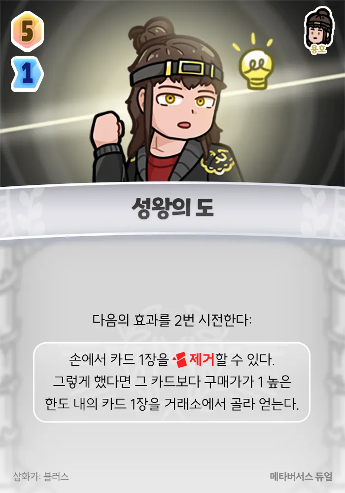 할 수 있다. 그렇게 했다면 그 카드보다 구매가가 1 높은 한도 내의 카드 1장을 거래소에서 골라 얻는다. ]