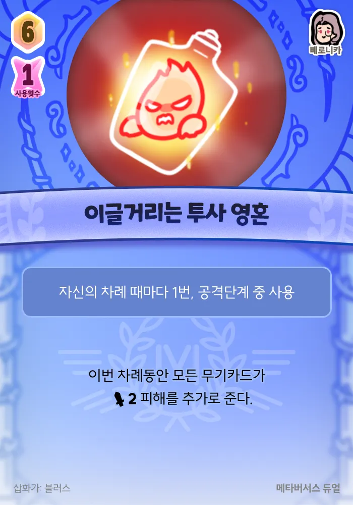 이번 차례동안 모든 무기카드가 2 피해를 추가로 준다.