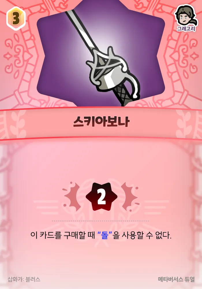 2 피해량, 이 카드를 구매할 때 “돌”을 사용할 수 없다.
