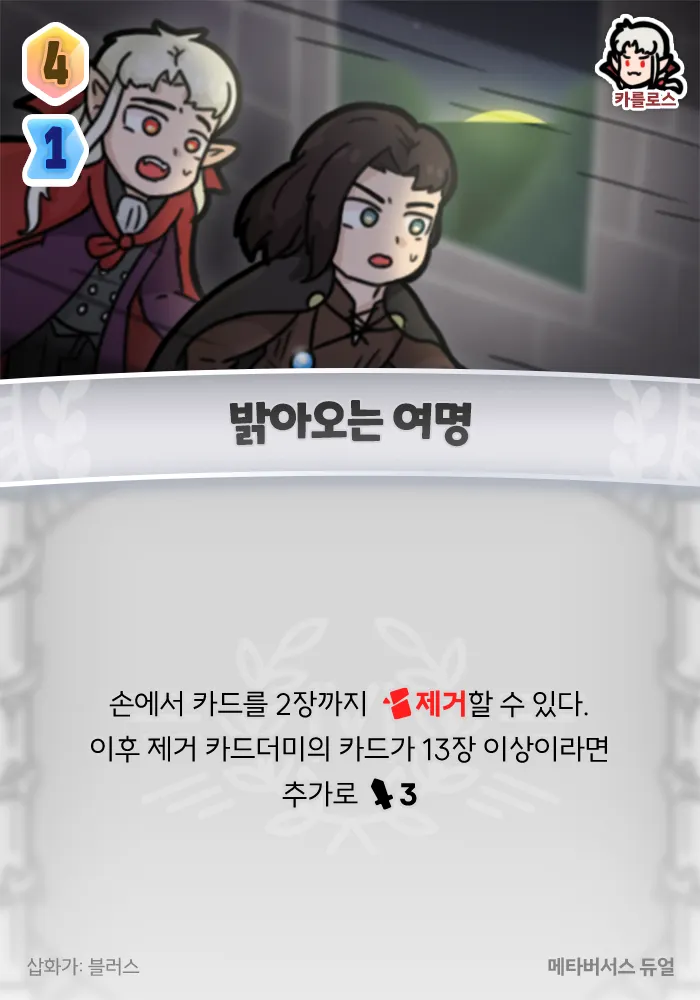 할 수 있다. 이후 제거 카드더미의 카드가 13장 이상이라면 추가로 3 피해.