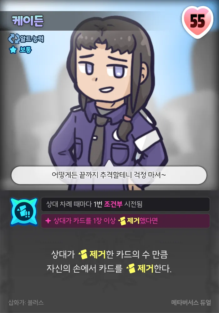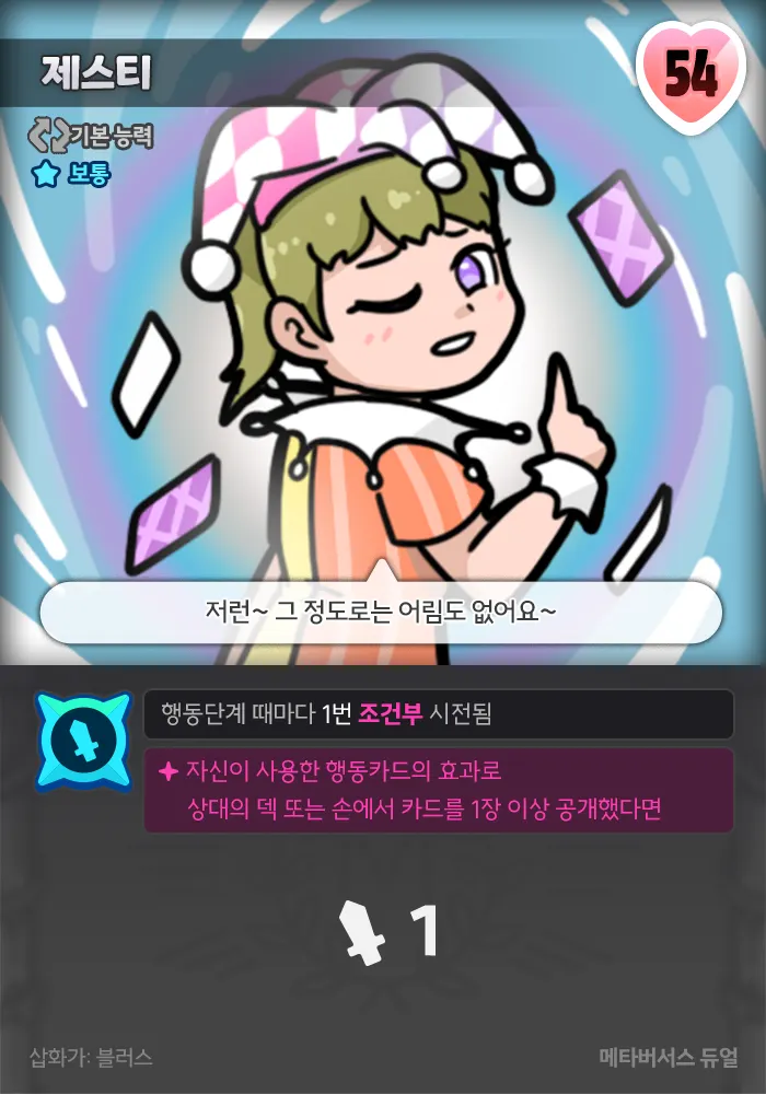 이후 상대는 직전에 한 카드와 이름이 같은 카드가 손에 있다면 그 카드를 1장 버린다.