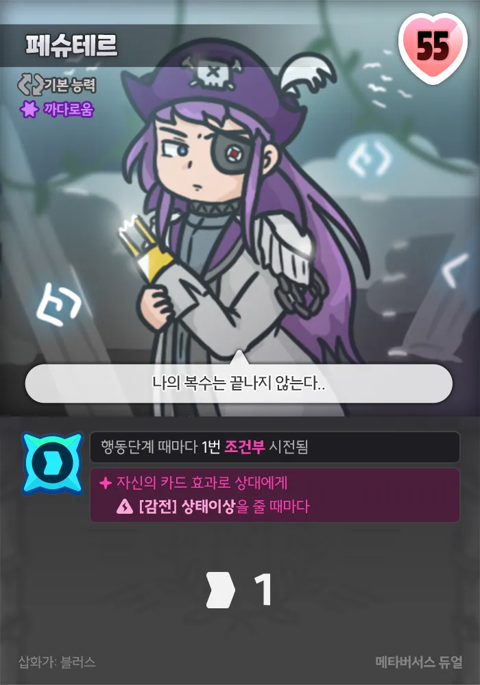 몸의 일부가 기계로 이루어진 해적. 냉혈한 성격으로 언제나 복수를 꿈꾼다.