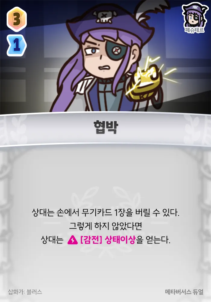 상대는 손에서 무기카드 1장을 버릴 수 있다. 그렇게 하지 않았다면 상대는