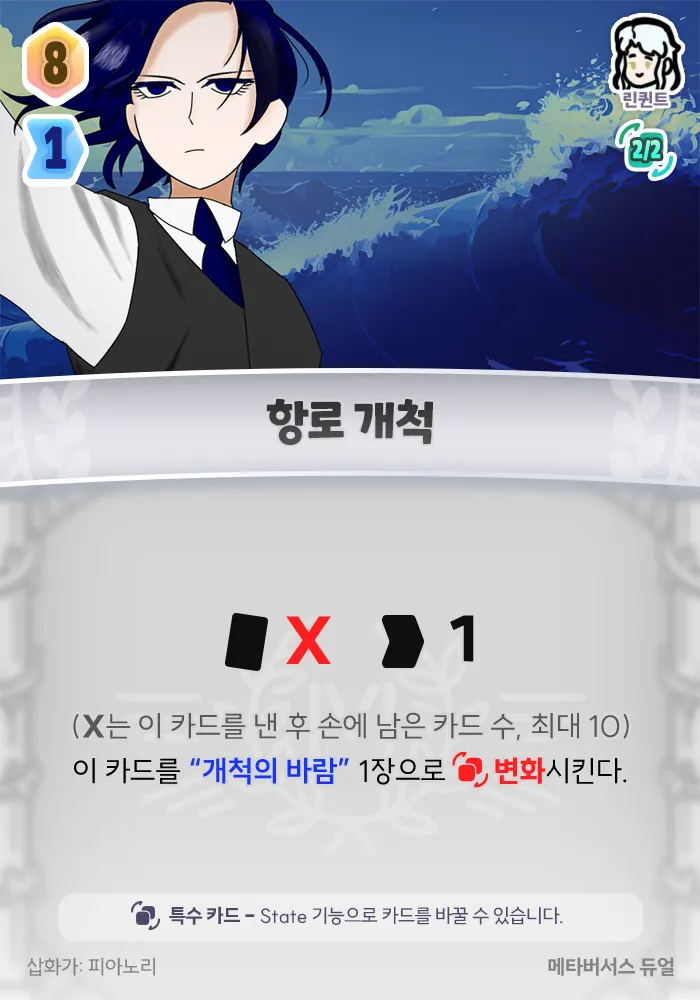 는 이 카드를 낸 후 손에 남은 카드 수, 최대 10) 이후 이 카드를 “개척의 바람”으로
