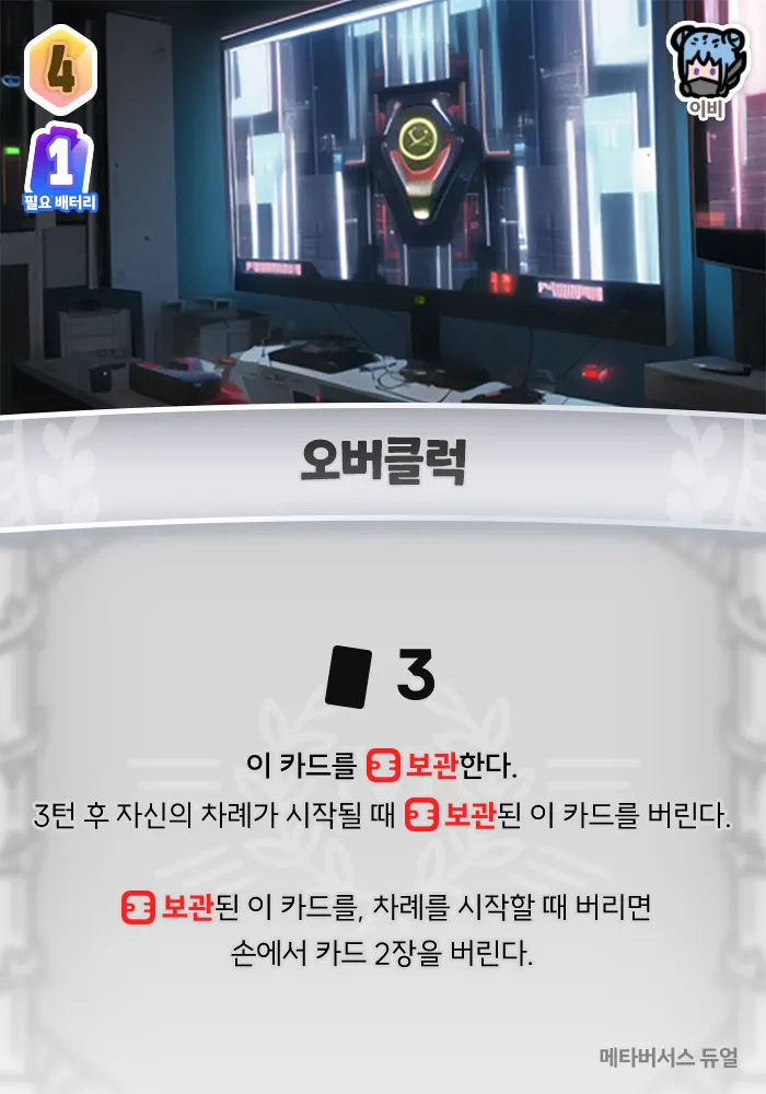 된 이 카드를, 차례를 시작할 때 버리면 손에서 카드 2장을 버린다.