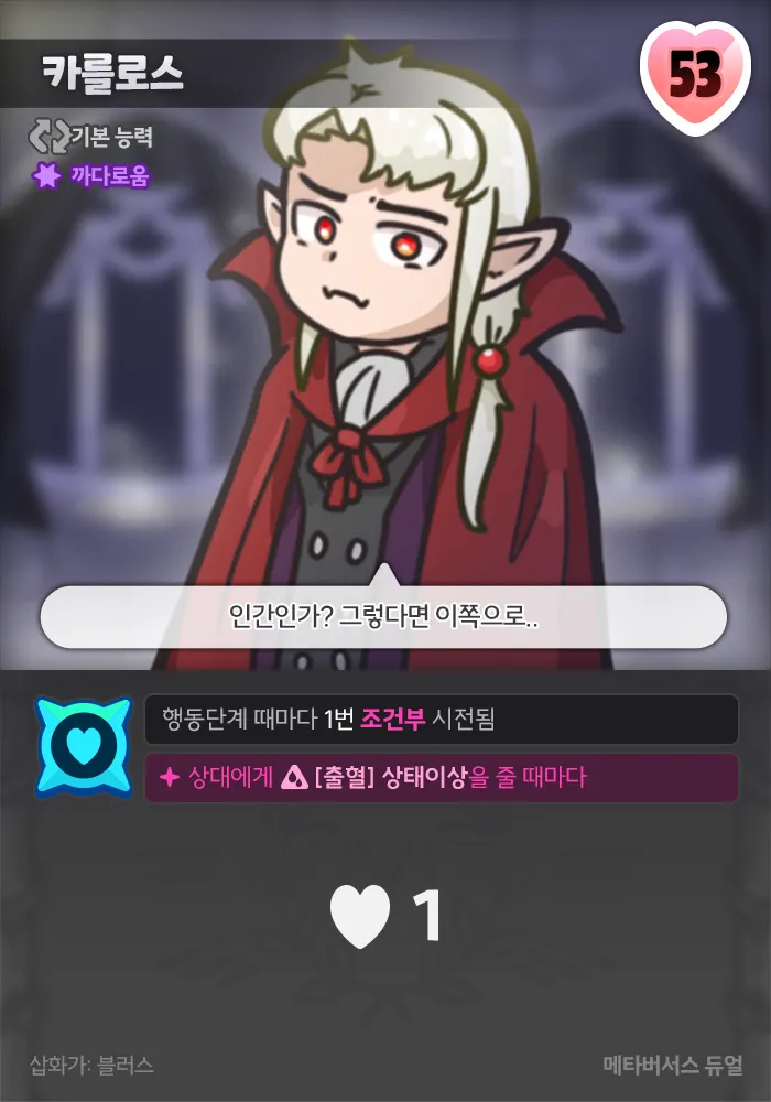 [출혈] 상태이상 : 행동카드로 피해를 입으면 추가로 2 피해를 입습니다. 어떠한 방식으로든 피해를 입었다면 이 상태이상을 해제합니다. •