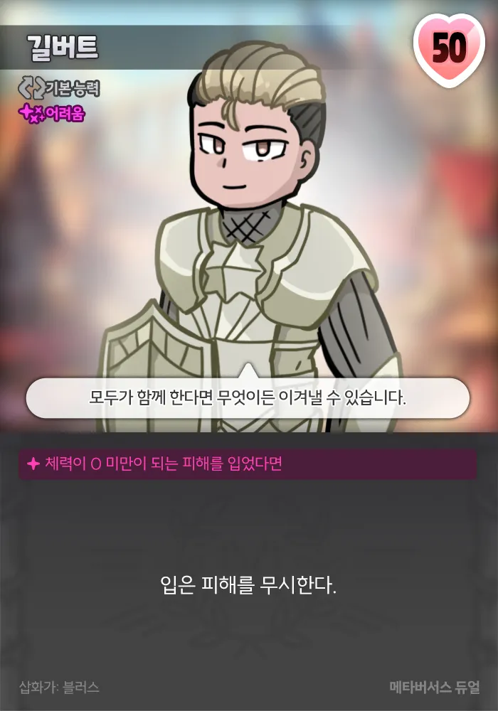 이 캐릭터팩은 "방어력 얻기, 다양한 추가 키워드" 스타일로 플레이할 수 있습니다.