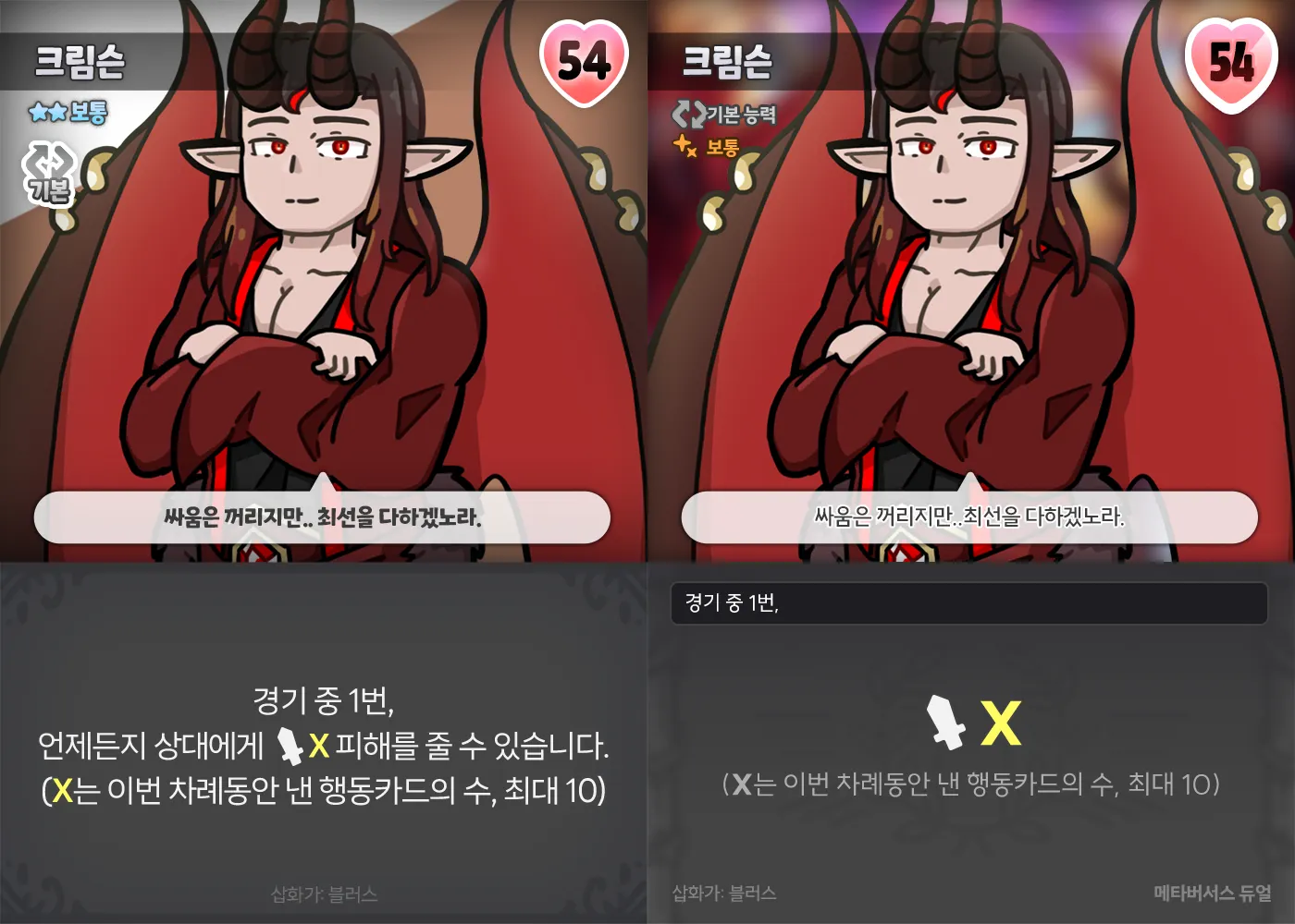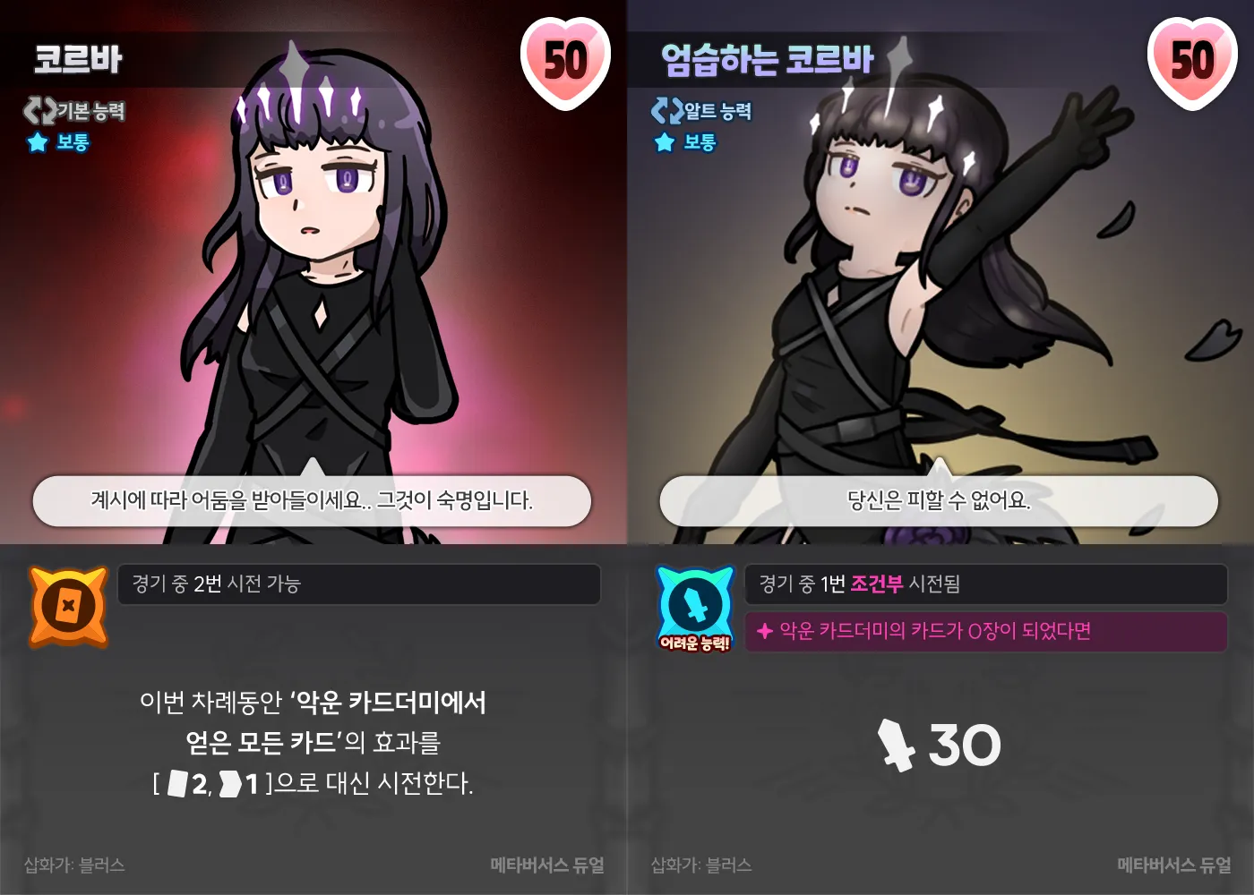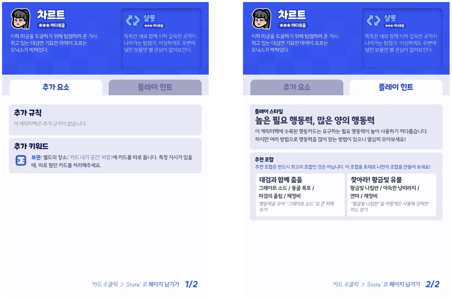 이 캐릭터팩은 "다른 카드로 효과 시전, 2개의 선택지" 스타일로 플레이할 수 있습니다.