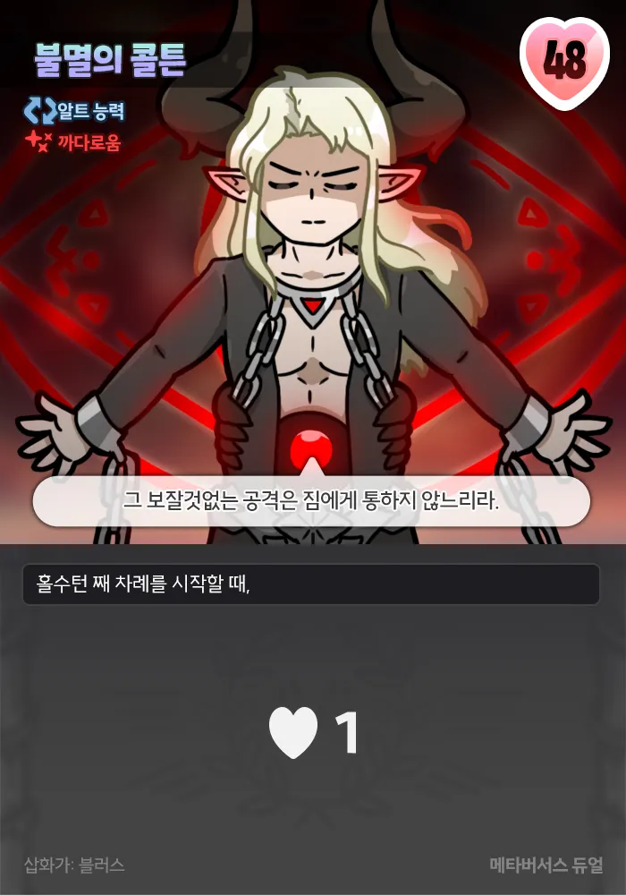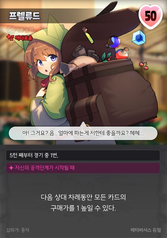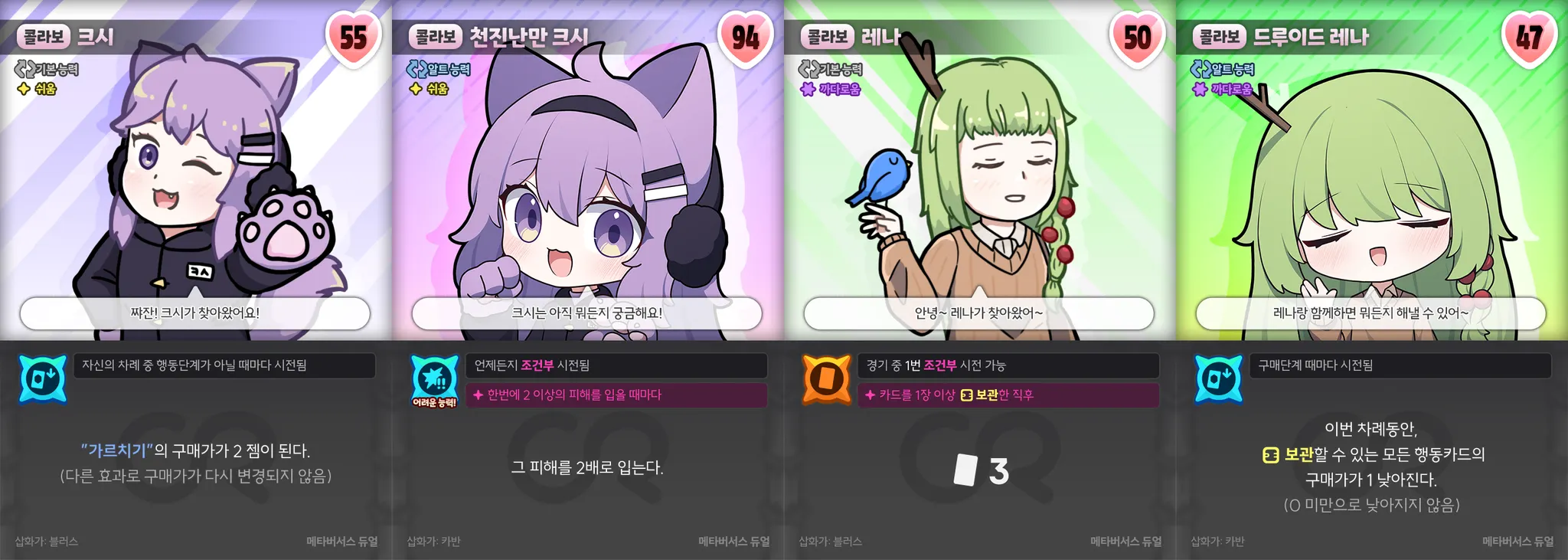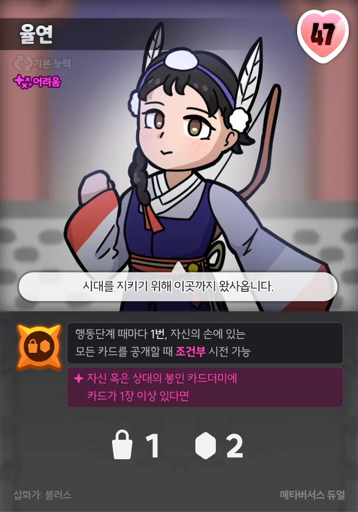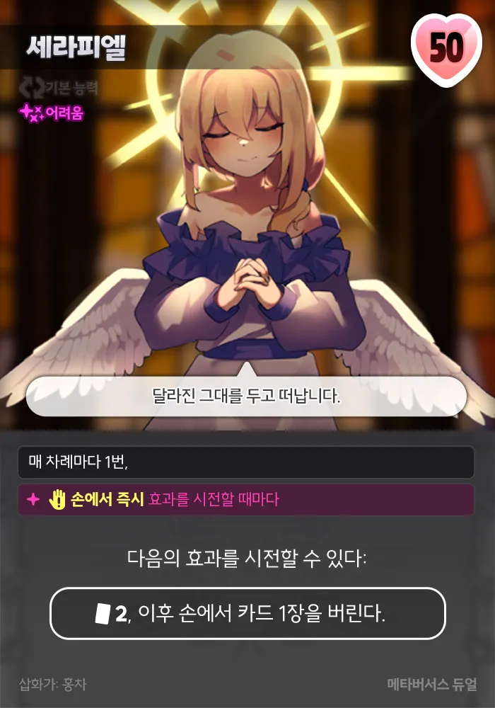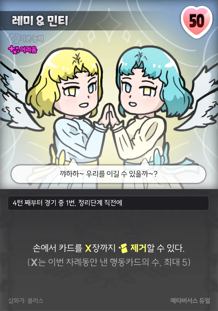 이 캐릭터팩은 "카드 많이 뽑기, 짝꿍 카드" 스타일로 플레이할 수 있습니다.