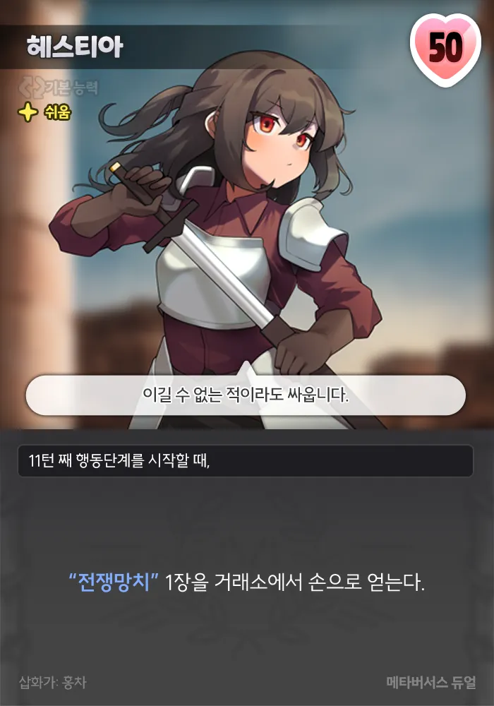 이 캐릭터팩은 "덱 압축, 기사 토큰을 모아 무기카드 얻기" 스타일로 플레이할 수 있습니다.