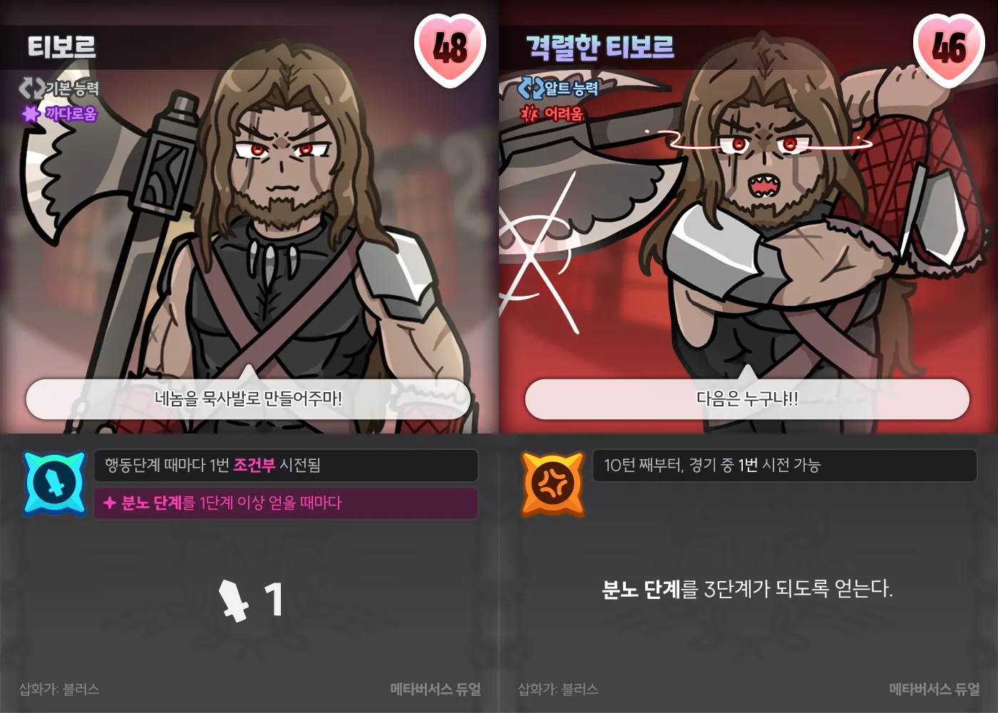 카드의 효과에 따라 ‘분노 단계’를 얻거나 잃고 분노 단계에 따라 추가 효과를 받을 수 있도록